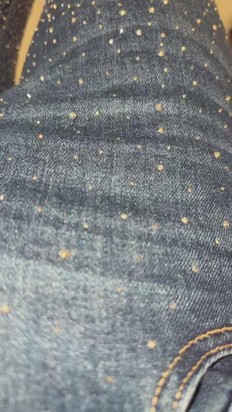 Ladies woman’s diamanté flared leg dark denim jeans